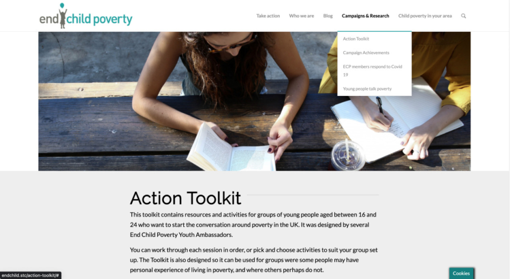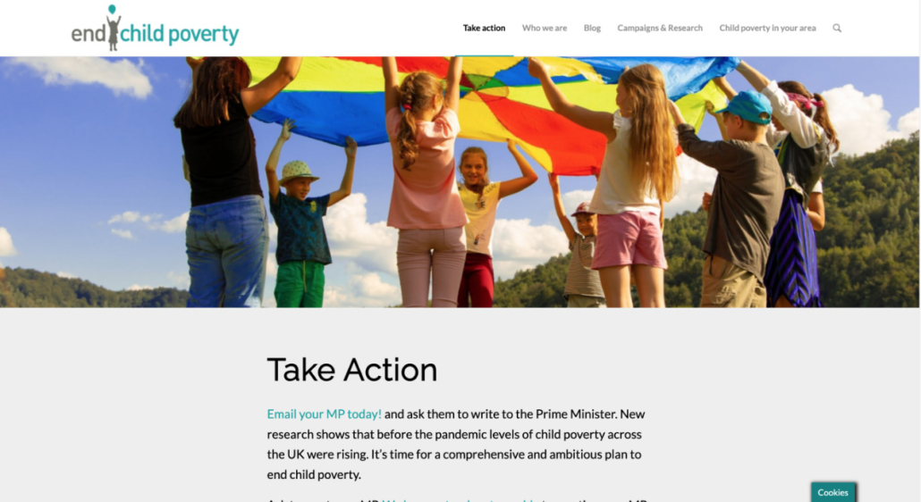 Charity Web site, collaborating with Save The Children, dedicated to supporting people in need in the UK.