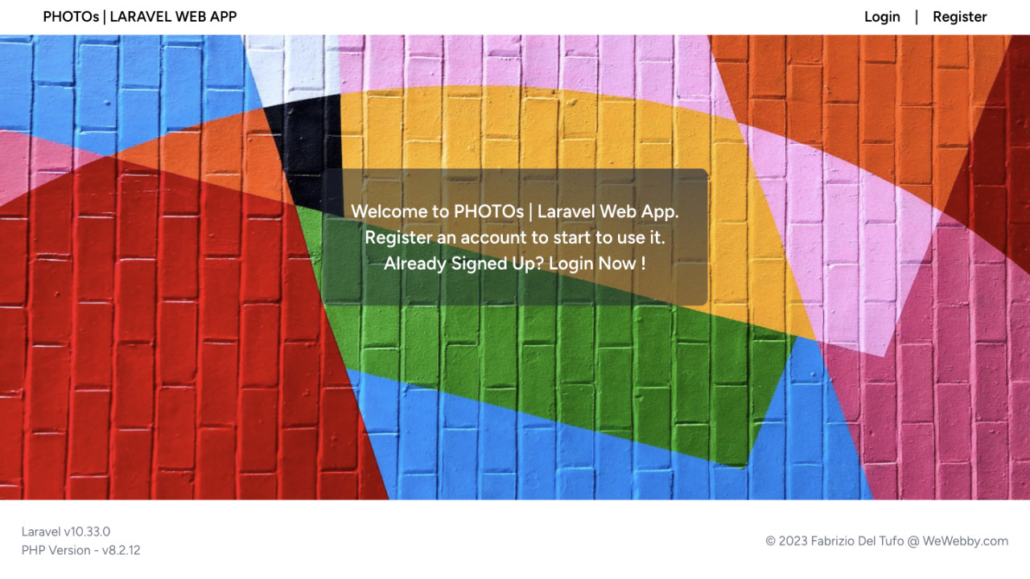 Web Project for managing photographs using Laravel V10 authentication automation.