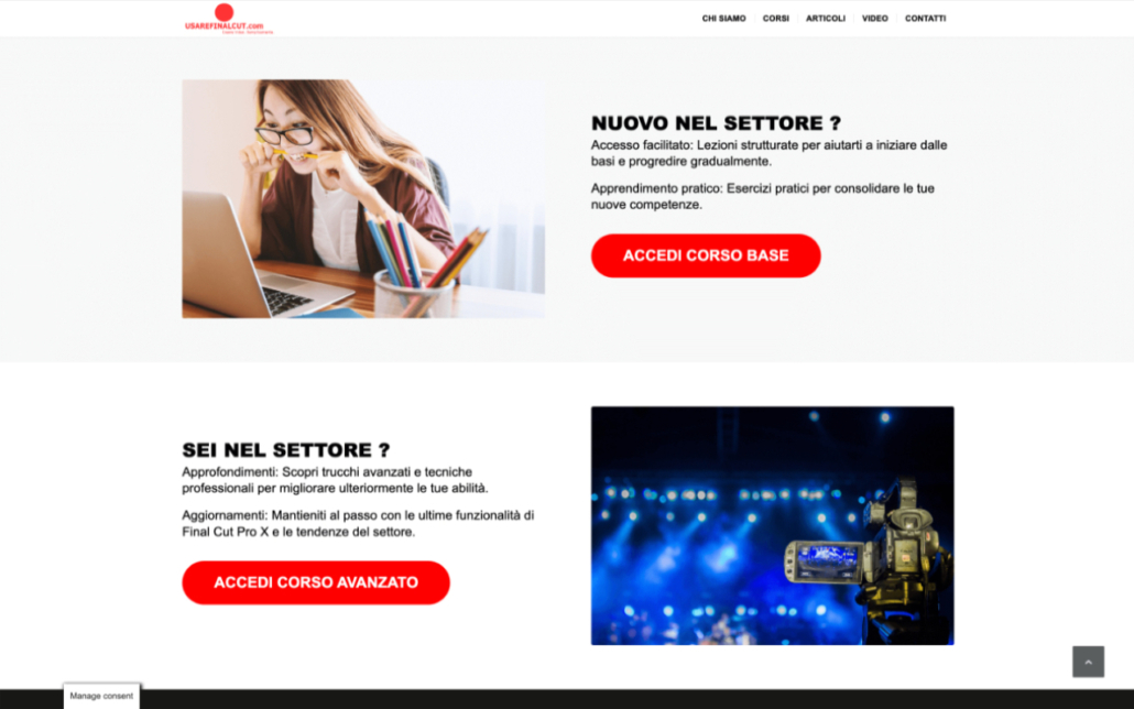 WordPress eTraining Platform for Italian Market dedicated to Video Editing & Motion Graphics.